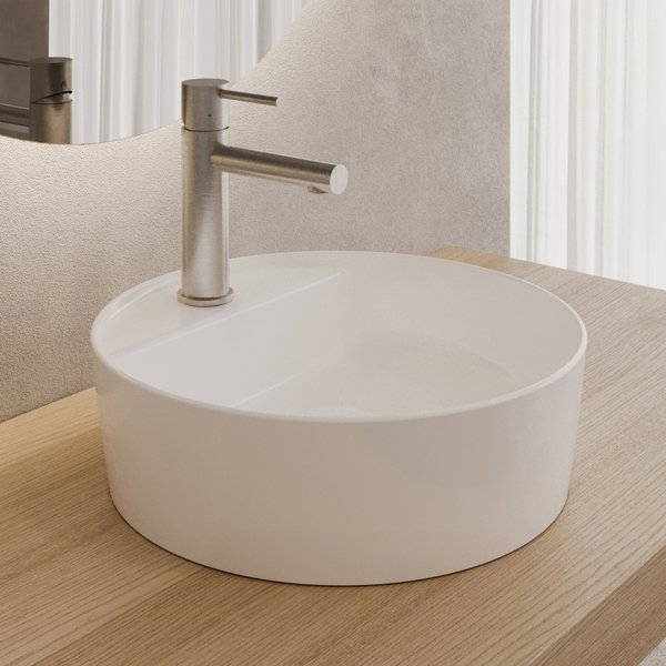 Выполнен таким образом, что обеспечивает комфортное пространство для мытья, внешний вид основан на круглой форме, а современный материал умывальника обеспечивает долговечный внешний вид и функциональность.