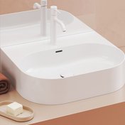 Умывальник предназначен для установки на столешницу или тумбу. Округление этого варианта оказывает приятный эффект и естественным образом уравновешивает строгость острых углов в ванной комнате.