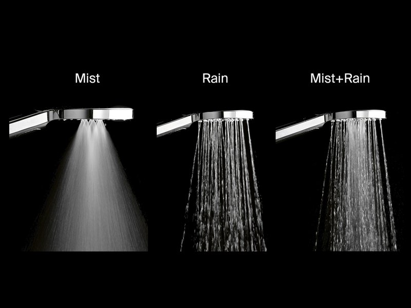 Побалуйте себя нежным туманом и дождем из тысячи водяных капель. Лейка ручного душа оснащена тремя разными режимами: "Rain", "Jet", "Rain-Jet".