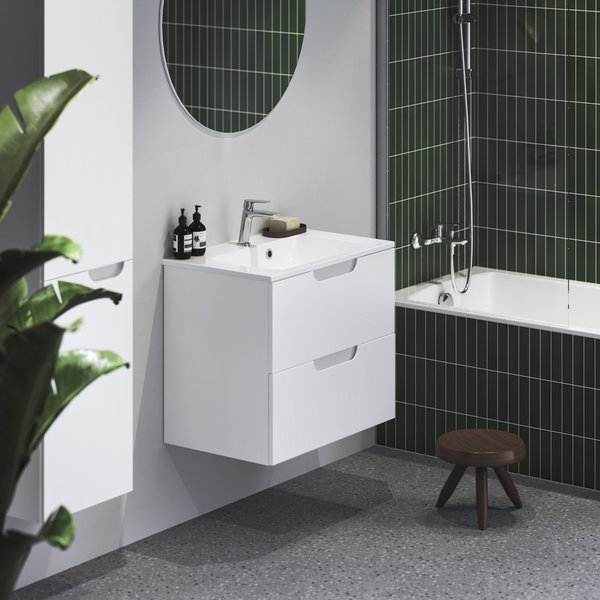 Высокий пенал с регулируемыми по высоте полками в верхней и нижней части образует компактную дизайнерскую единицу, отличающуюся эргономичным вырезом для удобного захвата дверцы. В двух цветовых вариантах. С точки зрения дизайна, он дополняет концепцию Classic II, подходящую для оснащения всей ванной комнаты с идеей практичности и сдержанного минимализма.