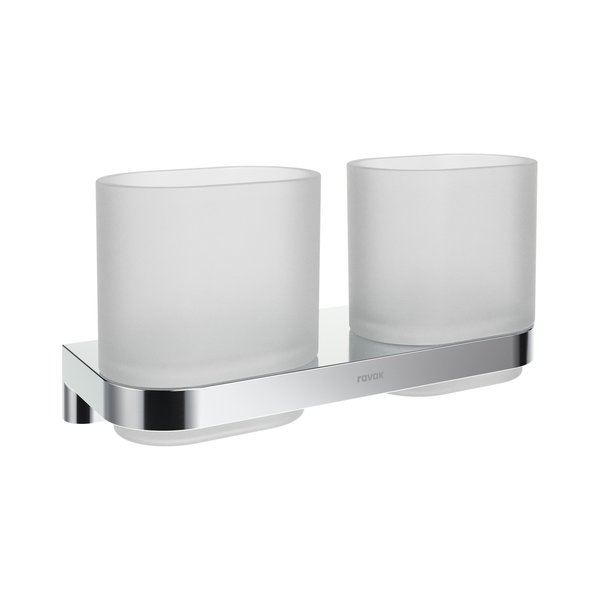 Держатель с двумя стаканами д/зубных щеток на двух штифтах и регулировочной металлической зажимной пластине. Расстояние между винтами составляет 66 мм. Монтажный комплект входит в комплект. Держатель оснащен пластиковым кольцом с внутренней стороны для мягкой фиксации стеклянной емкости. Для создания целостного решения и гармоничного дизайна ванной комнаты мы рекомендуем сочетать его с другими аксессуарами Chrome II. Для наружной чистки мы рекомендуем использовать чистящее средство RAVAK Cleaner Chrome.