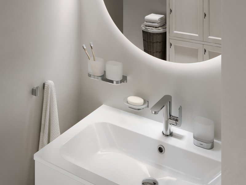 Держатель с двумя стаканами д/зубных щеток Chrome II можно использовать для размещения зубных щеток, зубной пасты или других мелких предметов, которые должны быть под рукой. Аксессуары для ванных комнат доступны в следующих вариантах исполнения: хром, черный матовый.