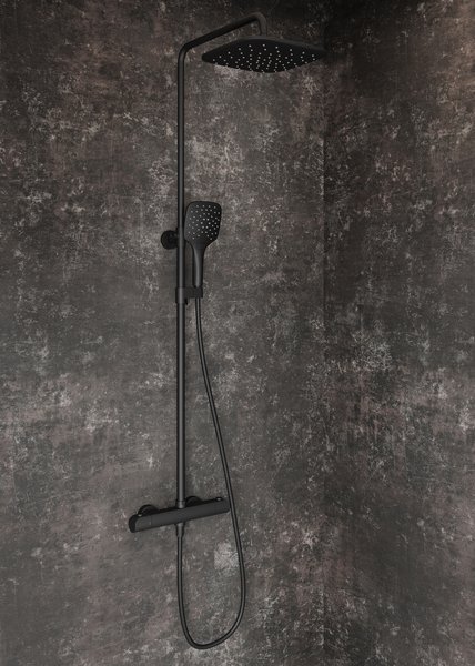 | X070443 | FL 091.20BL Душевая штанга Flat с термостатическим смесителем и душевым набором, черный |
