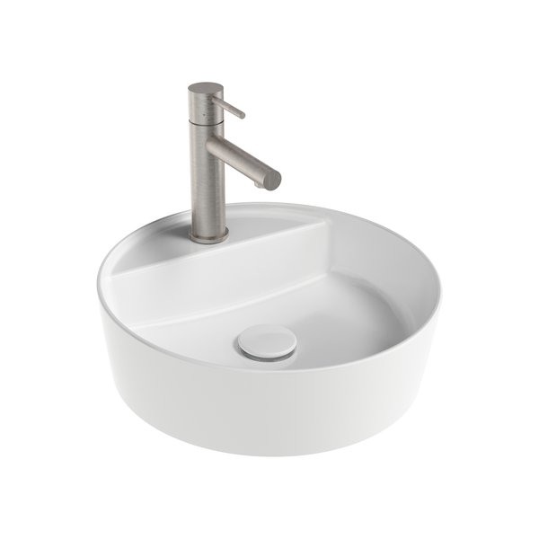 Выполнен таким образом, что обеспечивает комфортное пространство для мытья, внешний вид основан на круглой форме, а современный материал умывальника обеспечивает долговечный внешний вид и функциональность.