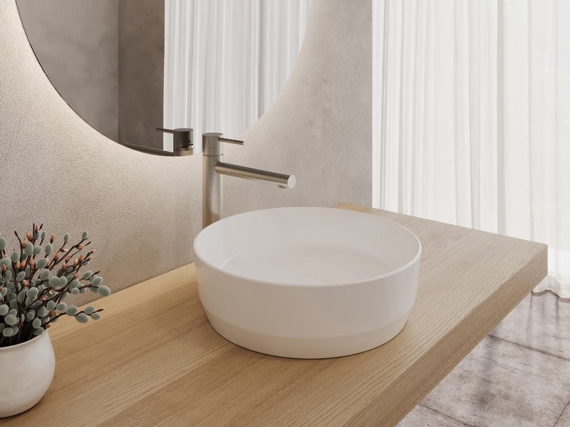- Дополнительные аксессуары: столешница под умывальник или тумба со столешницей, слив для умывальника фиксированный, Слив для умывальника Flat сифон хромированный или трубчатый, смесители высокие Chrome II, 10° Puri, Espirit или Eleganta