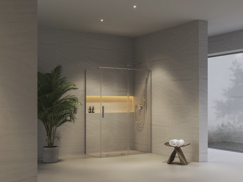 Идеальный партнер для душевых дверей RODP2. Комбинируя их, вы получаете квадратную или прямоугольную душевую кабину в соответствии с вашими потребностями.