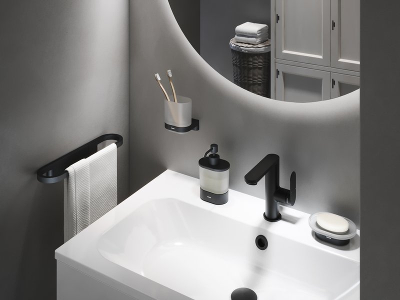 Держатель для мыла в дизайне Chrome II имеет практическое применение в ванной для быстрого мытья рук. Аксессуары для ванных комнат доступны в следующих вариантах исполнения: хром, черный матовый.