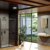 Тонкие пропорции рамы придают душевой кабине легкость и ванную комнату оптически не утяжеляют.