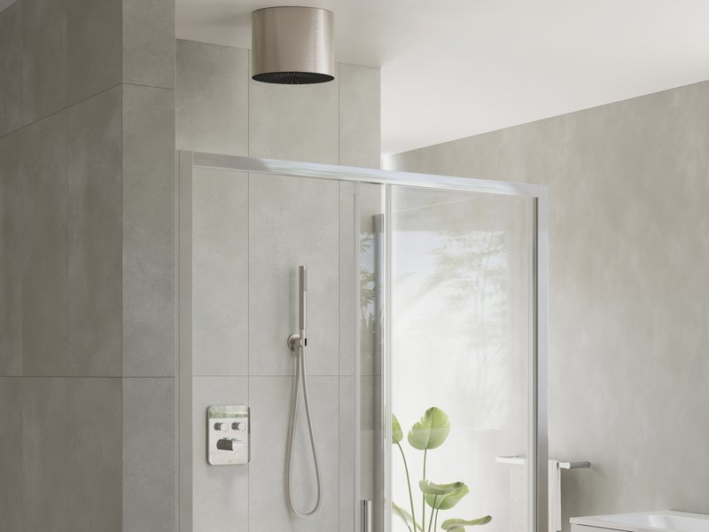 Потолочный верхний душ цилиндрической формы создает насыщенный душевой поток Rain с эффектом тропического дождя. Монтируется непосредственно к потолку с помощью кронштейна и шланга, которые входят в комплект. Для наружного очищения рекомендуем использовать средство Ravak Cleaner Chrome.