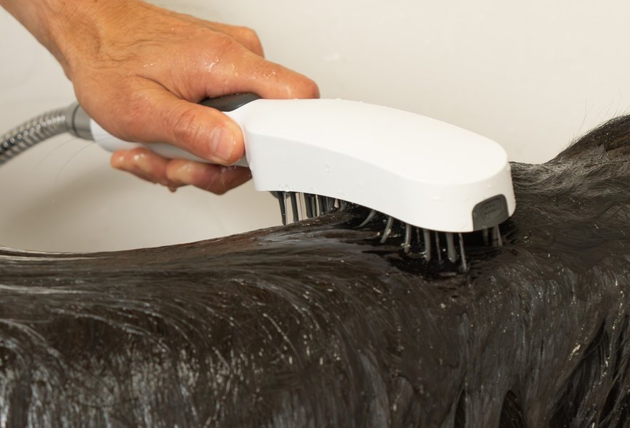 Струя Soft нежная, но в то же время достаточно сильная, чтобы вспенить и смыть шампунь. Струя Rain чрезвычайно нежная и особенно подходит для чувствительных участков вокруг ушей и глаз.