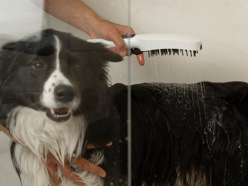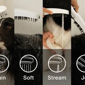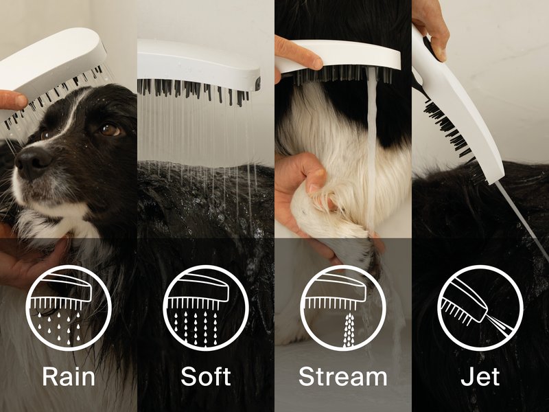 Фронтальная напорная форсунка, которой можно управлять отдельной кнопкой на задней панели, эффективно удаляет устойчивую грязь, такой как засохшая грязь. Душевая щетка достаточно гибкая, чтобы бережно расчесывать шерсть, лучше намылить шампунь и удалить грязь. Она также обеспечивает успокаивающий массаж.