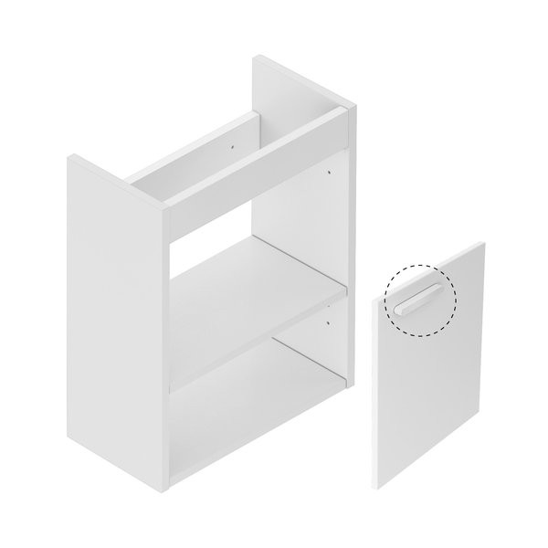 Корпус поставляется отдельно (без дверец) в собранном виде, включая монтажный набор (болты, петли, заглушки) и ручки. В комплектацию тумбы входит полка в цвете корпуса. Дверцы изготовлены только в белом глянцевом цвете и заказываются отдельно в Л/П вариантах. Тумба монтируется прямо на стену.