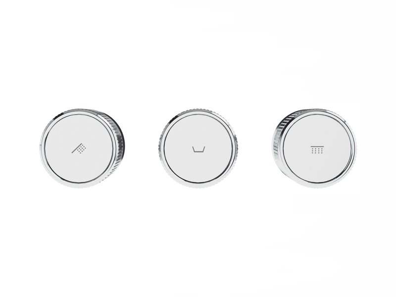 R-box имеет четко обозначенную стрелкой верхнюю часть изделия для правильной ориентации корпуса смесителя. В комплект входят три сменные кнопки.