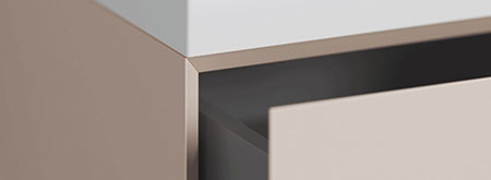 Края мебели скошены под углом 45 градусов и идеально стыкуются. Точная многослойная окраска придает поверхности матовый эффект. Белая версия мебели доступна только в глянцевом варианте.