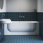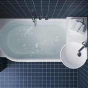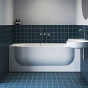 Специальный комбинированный сифон ARC элегантно отводит воду из раковины непосредственно в слив ванны. Все трубы скрыты за акриловой панелью, поэтому вид ванной комнаты остается чистым и ничем не загороженным — даже во время принятия ванны.