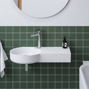 Умивальник з литого мармуру ARC для настінного монтажу або вбудованого монтажу над ванною, без переливу. Білий колір. З отвором для змішувача.