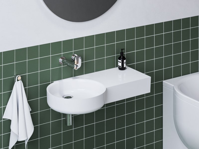 Тонкий край раковины ARC плавно переходит в большую зону для хранения, на которой поместится все необходимое: мыло, зубные щетки, полотенце, косметика и свеча — например, когда вы планируете принять расслабляющую ванну.