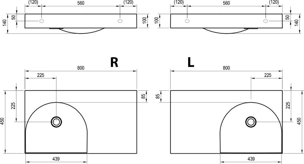 | XJXL1380000 | 800x450x100 | Умывальник Lite 80/45 Л, без отверстия, без перелива |