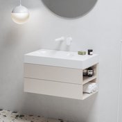 Раковина из литого мрамора Lite для установки на стену или встраивания в подвесной шкафчик, без перелива. Белый цвет. Левый или правый цвет. Без отверстия – для использования со встроенным смесителем.