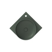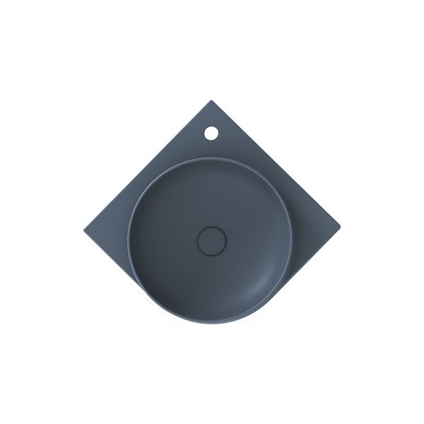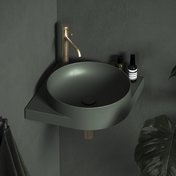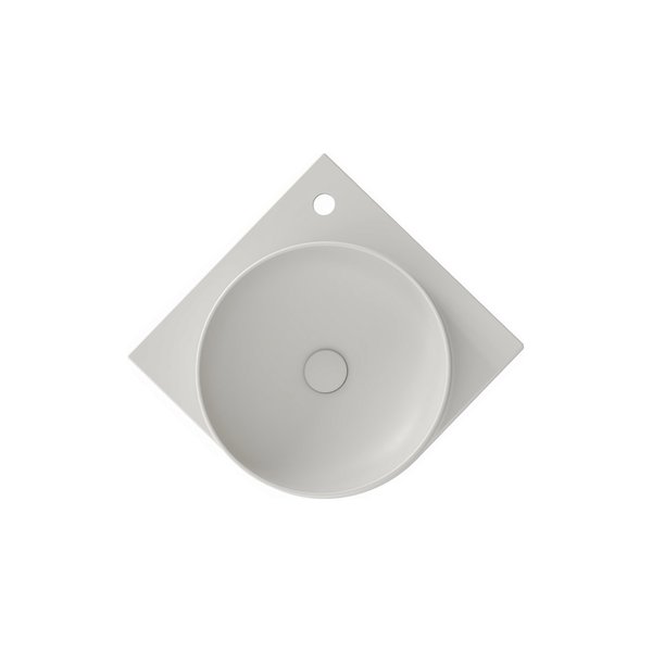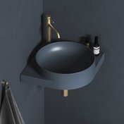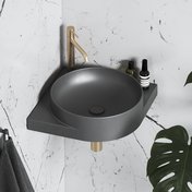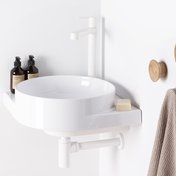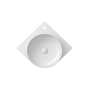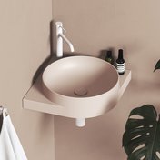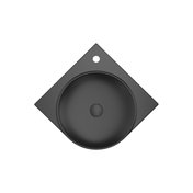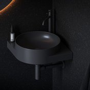 Угловой керамический умывальник Yard 450 C отличается круглой формой и углублением для хранения.