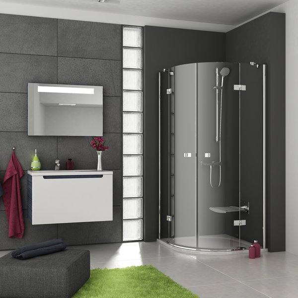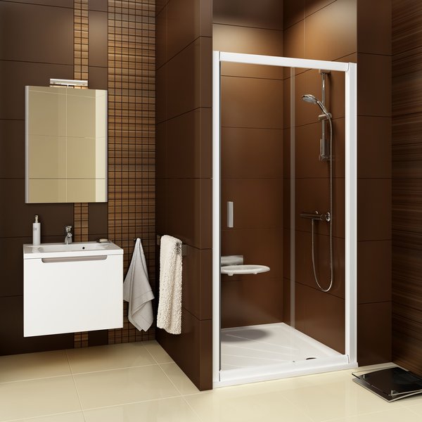 С помощью комбинации душевых дверей c неподвижной стенкой образуете квадратный или прямоугольный душевой уголок желаемого размера.